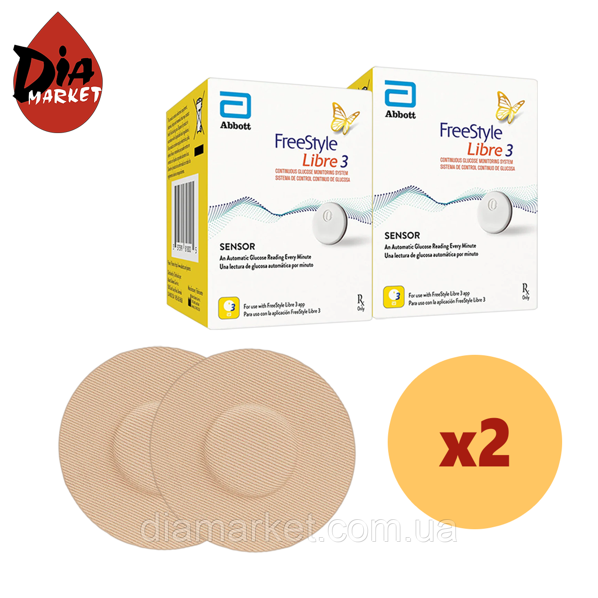 Цей комплект містить 2 сенсори Freestyle Libre 3 і два тейпи для зручності використання.