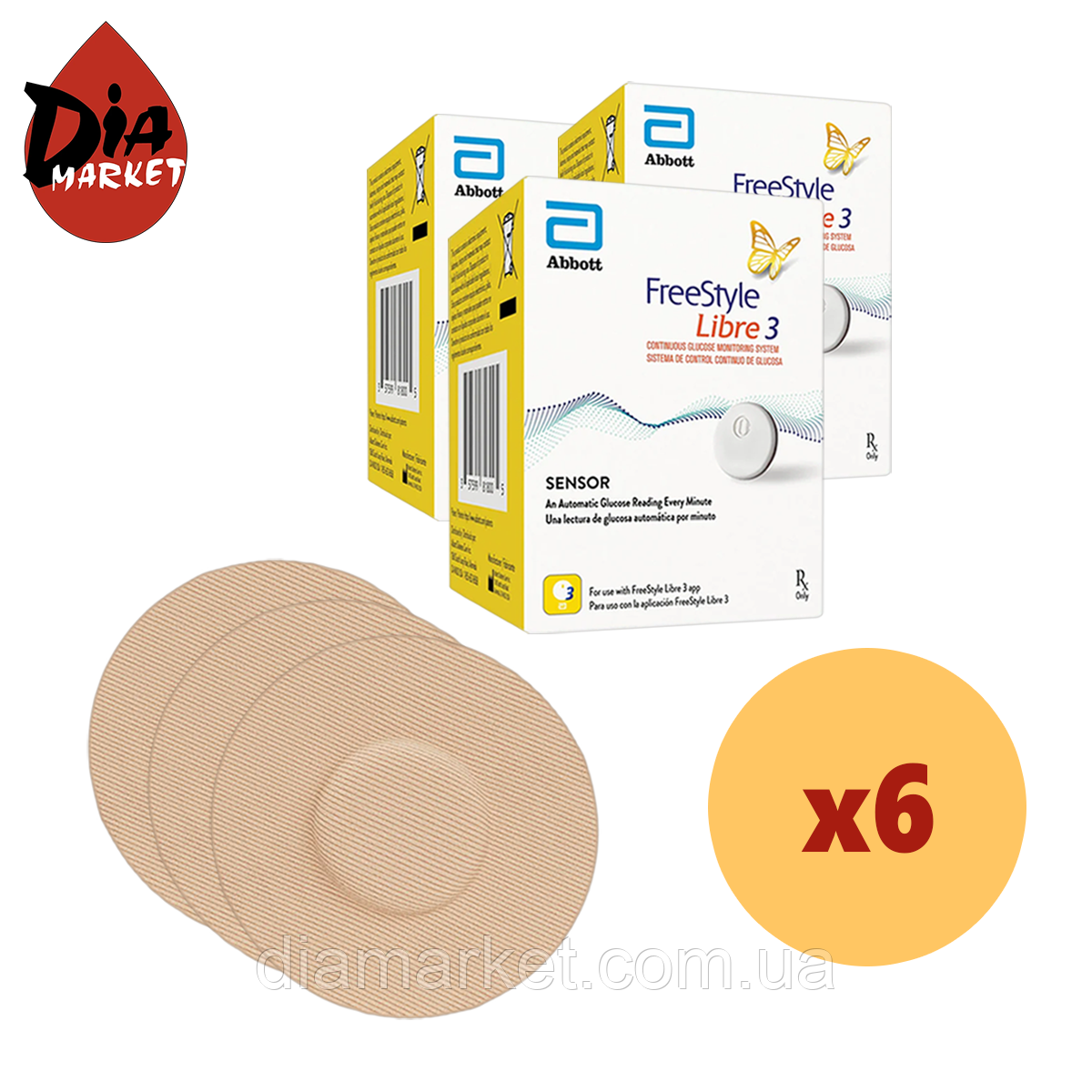 Цей комплект містить 6 сенсорів Freestyle Libre 3 і шість тейпів для зручності використання.